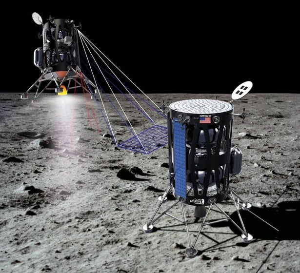 The six-footed carbon fiber and titanium lander, powered by solar — towering 14 feet — carries six experiments for NASA and is intended to operate for a week, until the long lunar night.. The space agency gave the company $118 million to build and fly the lander, part of its effort to commercialize lunar deliveries ahead of the planned return of astronauts in a few years.