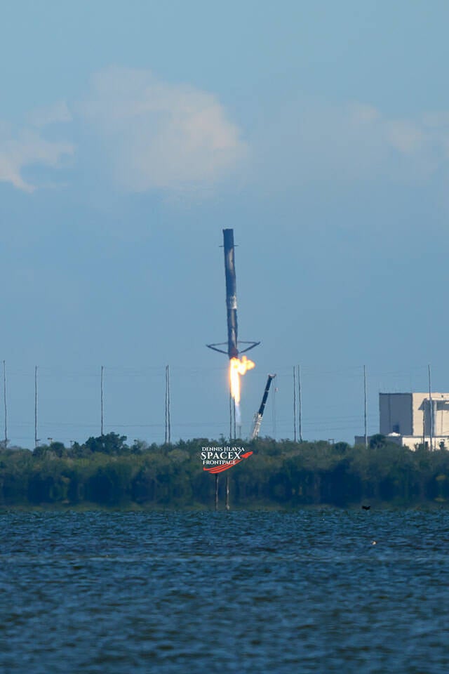 entry burn. This began to slow down the rocket as it lowered to CCSFS. Aligned with LZ-1, the landing burn allowed B1072 to gently touch down on the concrete pad. A double sonic boom spread across the local area.