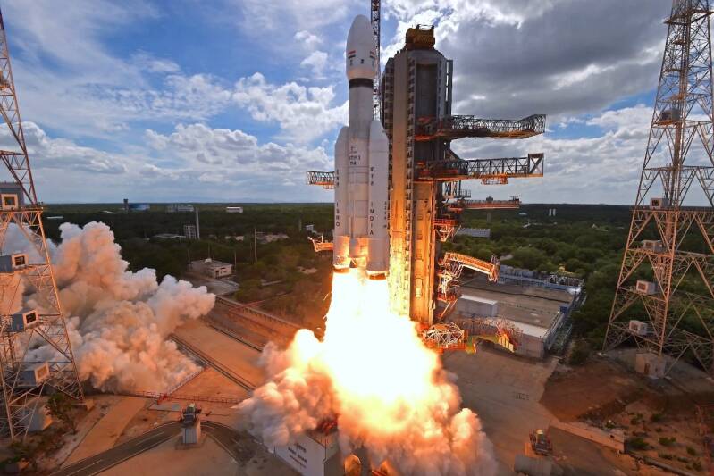 Liftoff of the Moonbound Chandrayaan 3 by a GSLV Mk III rocket. Image Credit: ISRO