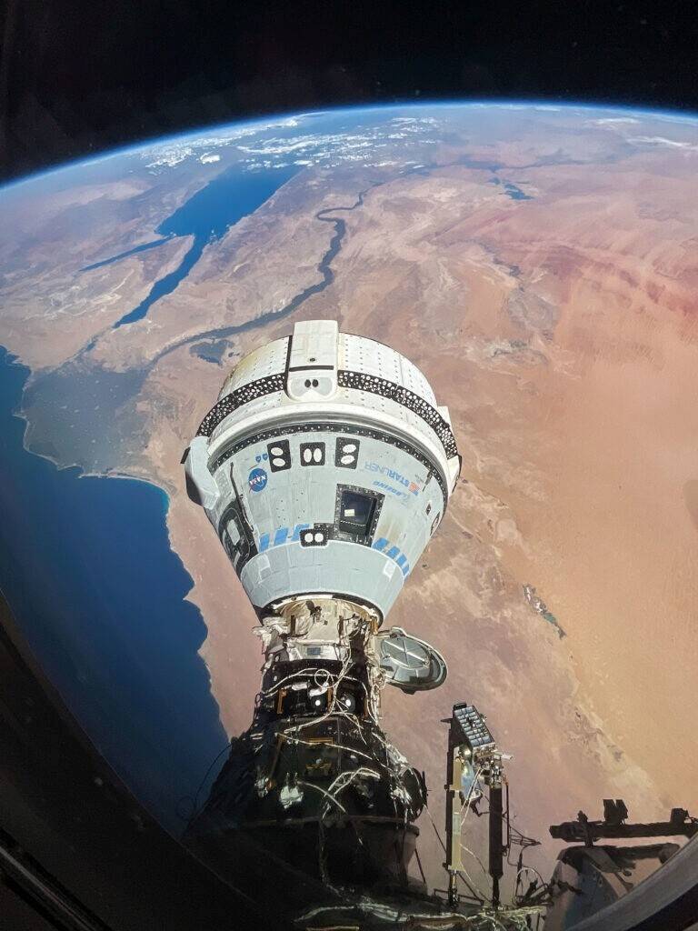 Boeing’s Starliner spacecraft docked to the ISS as it flies over Egypt in June 2024 during the Crew Flight Test. Credit: NASA